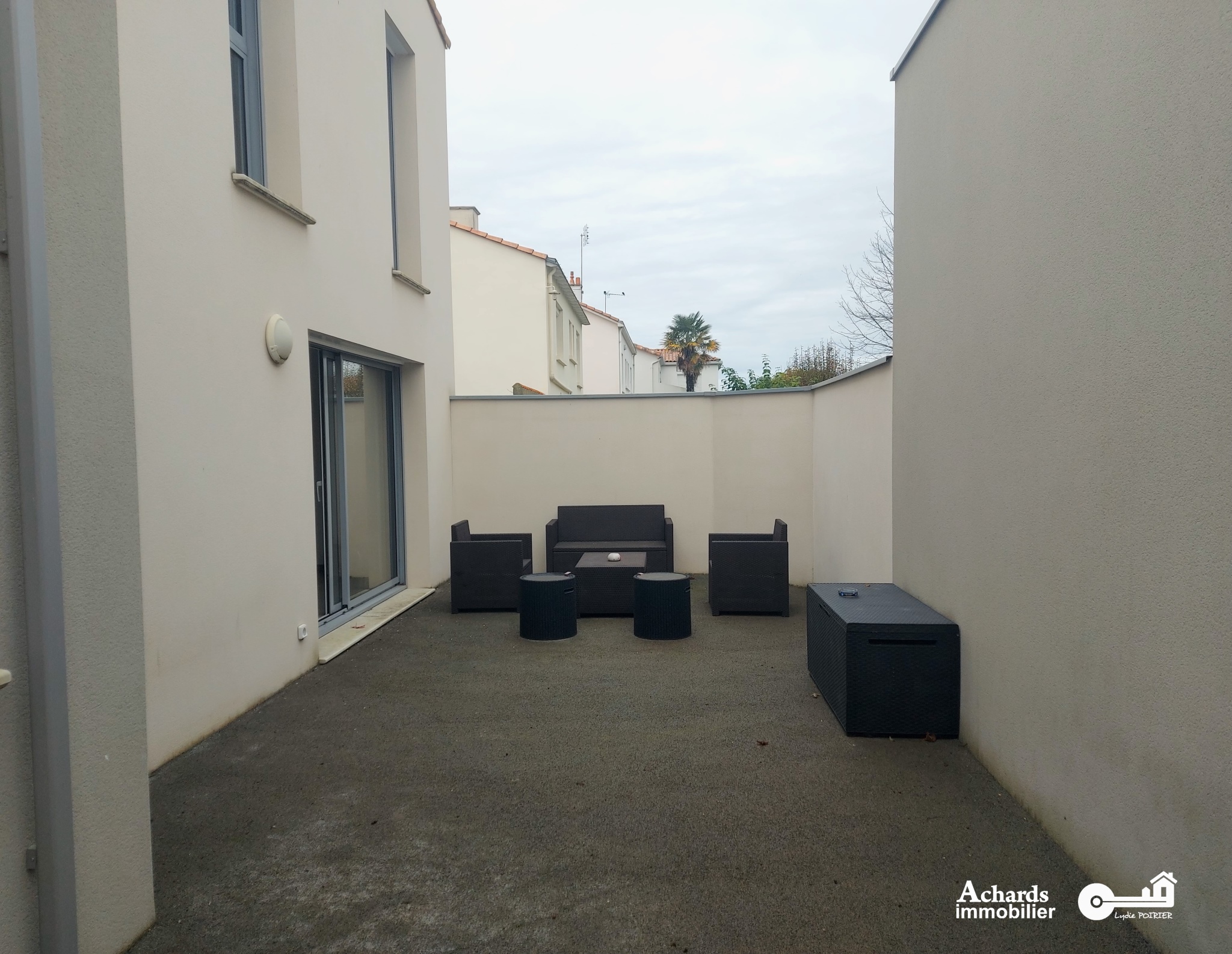 À l’extérieur, une terrasse clôturée permet de profiter des beaux jours en toute intimité.