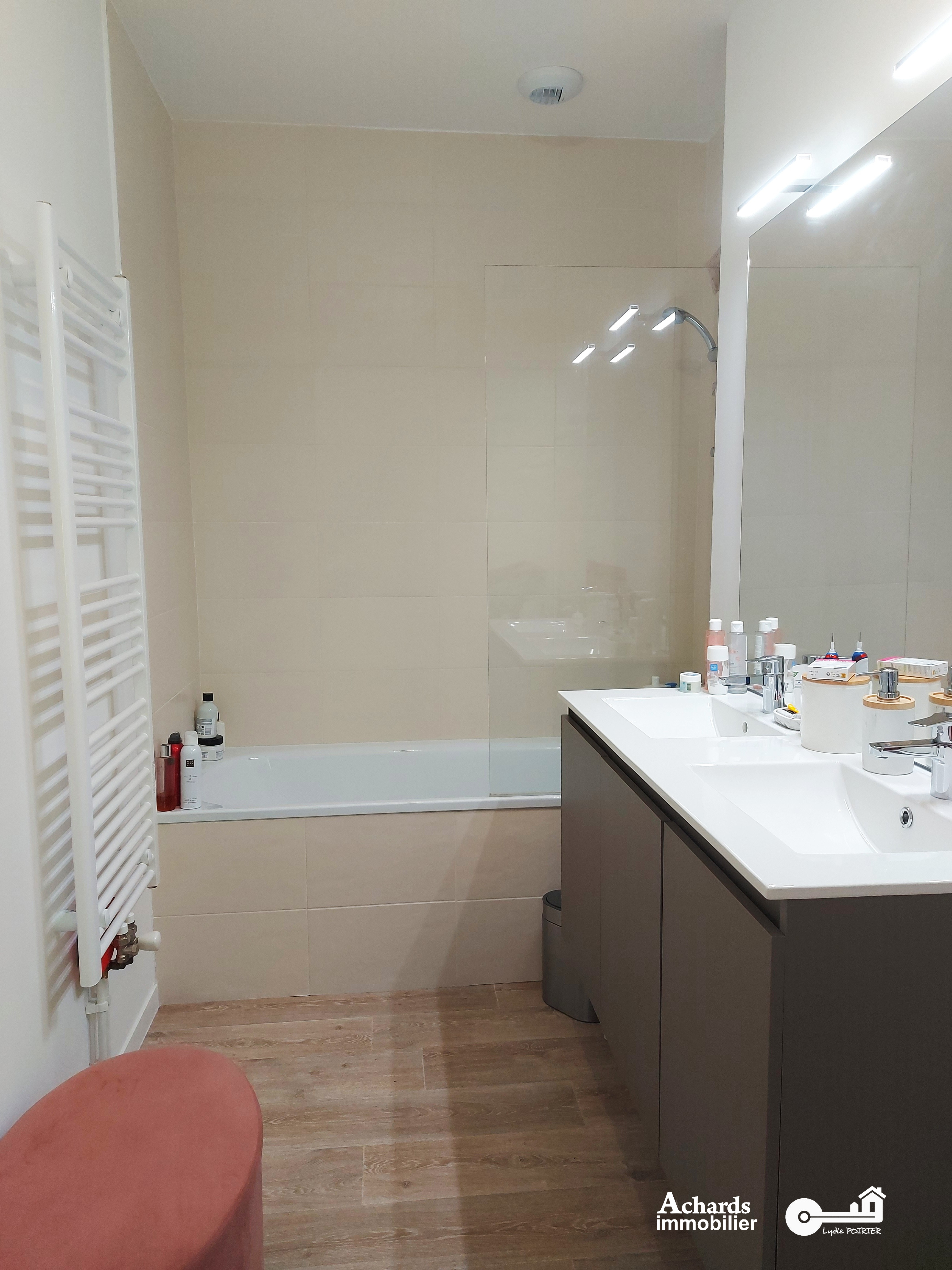 L’étage accueille deux chambres lumineuses, un second WC et une salle de bains moderne, offrant un espace nuit confortable et pratique.